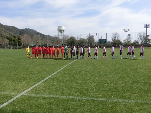 今日は高知大学とのトレーニングマッチです。田島コーチの指示を真剣に聞く選手たちです。