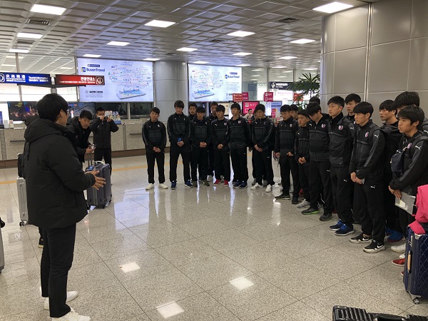 チームは午前に関西国際空港に出発して、釜山の金海国際空港へと向かいました。