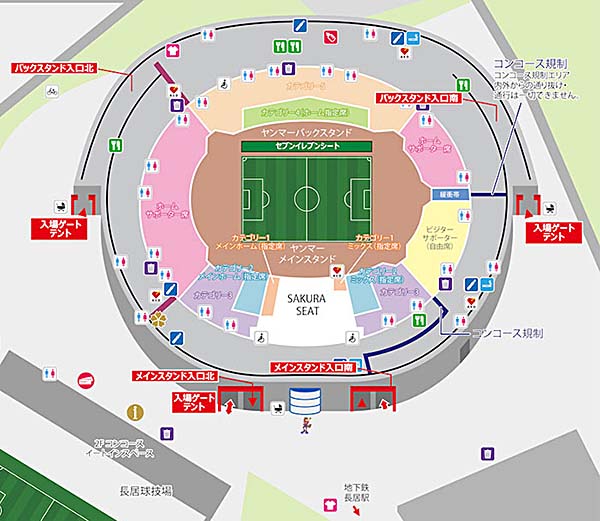 受付終了後、特別先行入場にお並びいただいているお客様の最後尾が入場ゲートテント(バック北:スロープ下テント、メイン北:階段下テント)を通過次第、SAKURA SOCIO・SAKURA SOCIOキッズの先行入場に移ります。 - 先行入場開始後は、入場ゲートテント(手荷物検査の実施場所/バック北:スロープ下テント、メイン北:階段下テント)までの合流となります。「入場ゲートテント」以降は、SAKURA SOCIO・SAKURA SOCIOキッズの先行入場の列にお並びにいただくこととなりますので、特別先行入場の列整理時には待ち列を確保した場所にお戻りください。また、列整理確認後は付近でお待ちいただき、列移動前にはすぐに待ち列に戻れるようにご協力のほどお願いします。