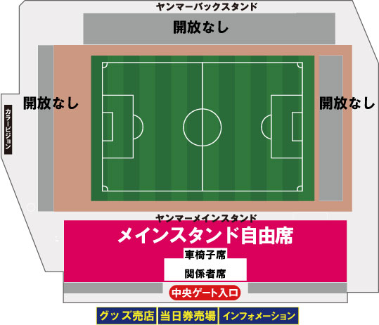 ※入場口はメインスタンド「中央ゲート入口」の1カ所です。