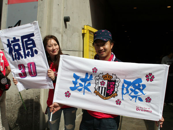 椋原健太選手のゲーフラは作成会で、「球際」のゲーフラはご自宅で10時間もかけて仕上げたとのこと。クラブエンブレムも細部までしっかり仕上がり、すばらしい出来でした!!