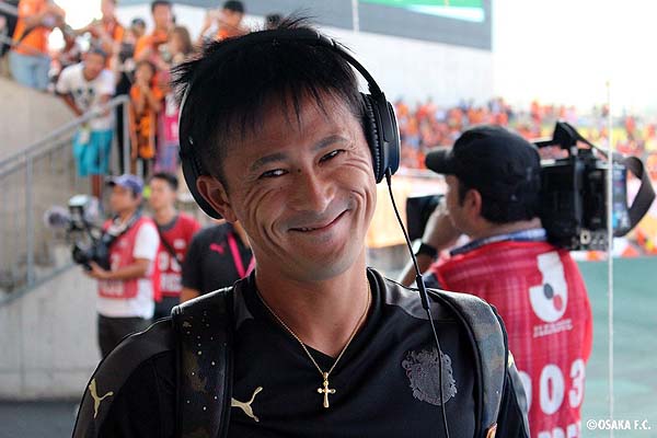関口訓充選手がスタジアムに到着!目線と笑顔、いただきました!